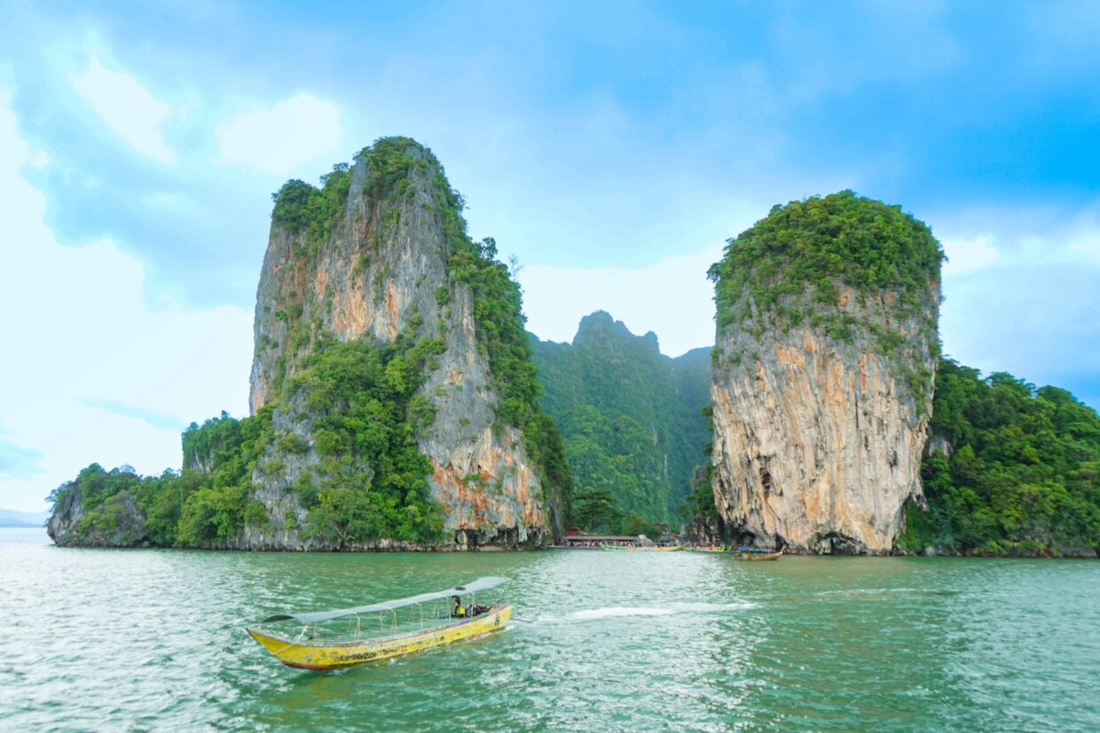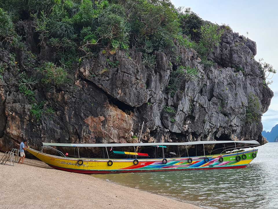 พอถึงท่าเรือกระโสม.ท่านจะได้ขึ้นเรือหางยาวเพื่อนำท่านเที่ยวชมอุทยานแห่งชาติอ่าวพังงา เรือจะพาท่านชมป่าโกงกางที่อุดมสมบูรณ์ที่สุดในประเทศ เขาหินปูนน้อยใหญ่รูปทรงต่างๆ และแวะเกาะพนัก เกาะตาปู หรือเกาะเจมส์บอนด์ แล้วจึงพาท่านไปรับประทานอาหารที่เกาะปันหยีชุมชนหมู่บ้านลอยน้ำ เยี่ยมชมสนามฟุตบอลกลางทะเล แล้วจึงเดินทางกลับไปท่าเรือกระโสมเพื่อขึ้นรถตู้กลับโรงแรมที่พักในภูเก็ตโดยสวัสดิภาพ