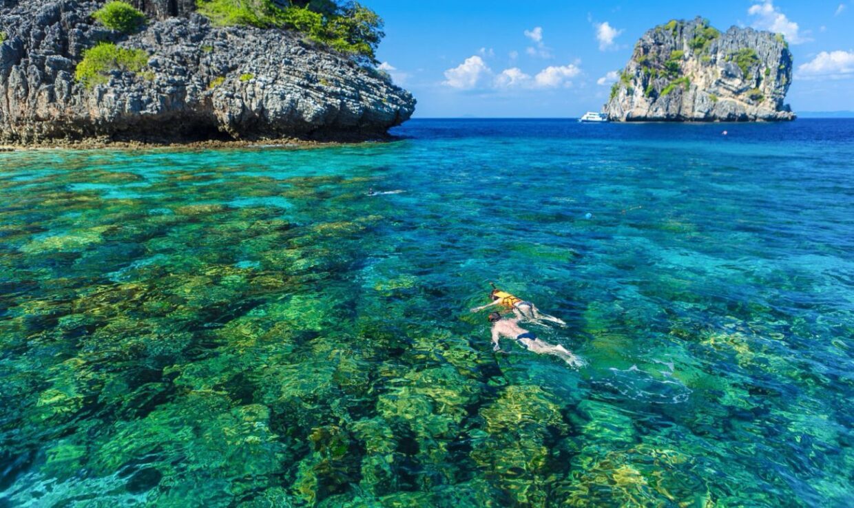 10.00 แวะชมความสวยงามของเกาะห้า ดำน้ำชมปะการัง จุดที่ 1 ณ ใจกลางเกาะห้า จุดดำน้ำตื้นที่มีที่มีปะการังหลากสี อัดแน่นไปด้วยความสมบูรณ์และความหลากหลายทางธรรมชาติ ทั้งฝูงปลานานาชนิด ปักเป้า หอยมือเสือ ฝูงปลาสีน้ำเงิน จากนั้น นำทุกท่านขึ้นเกาะรอกนอก ที่ตั้งของที่ทำการอุทยานแห่งชาติหมู่เกาะลันตา ชมความสวยงามของหาดทรายขาว ณ อ่าวม่านไทร